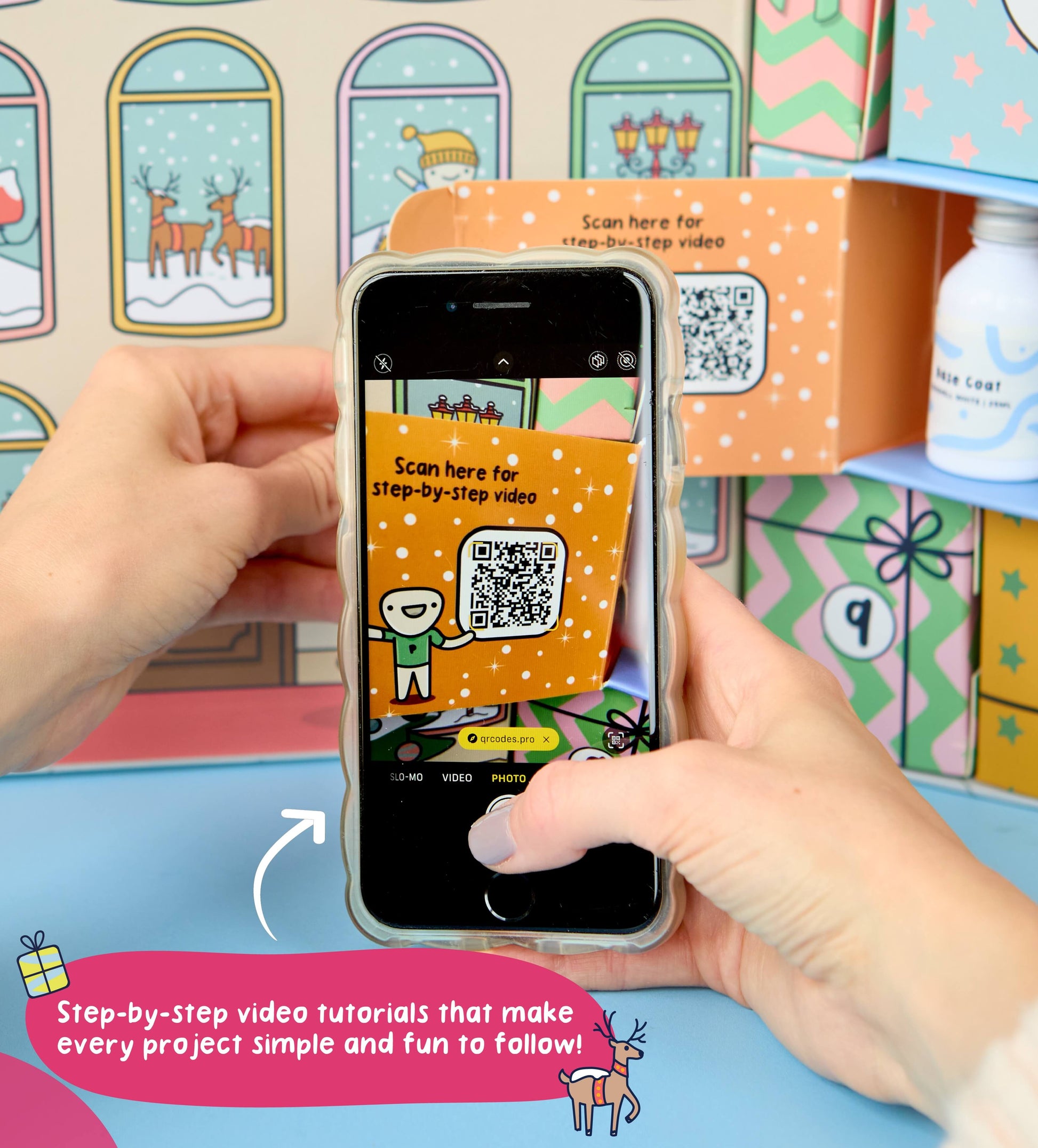 Behind each door you’ll discover everything you need to create unique Christmas keepsakes and decorations, with different types of premium clay, tools, paints and surprises to spark your imagination. Some days reveal a complete craft activity, while others hide the little extras that make your creations shine. Simply scan the QR code in each box to access the step-by-step videos that will walk you through your Christmas crafting journey.