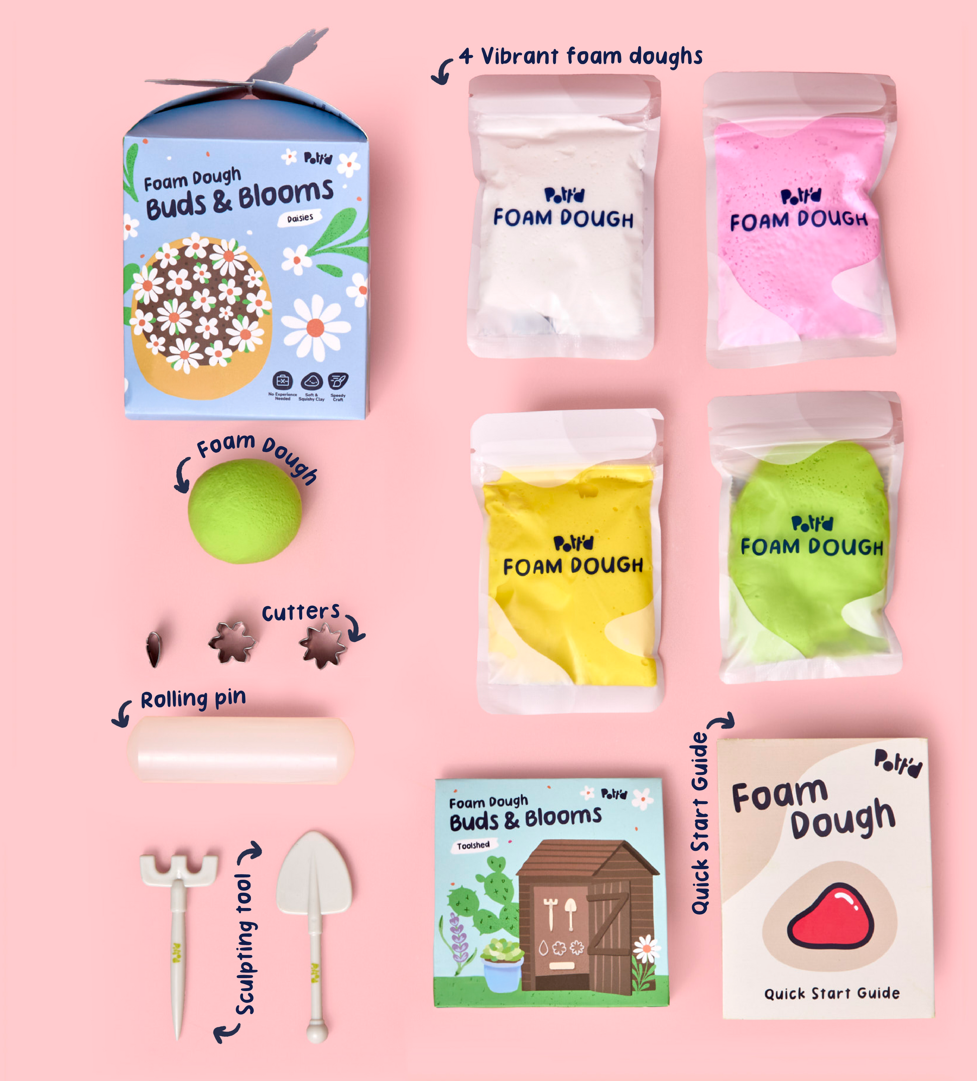 Brand new to crafting? No worries! Pott’d Foam Dough kits come with all the tools & foam dough you need, quick-start guide and step-by-step video tutorials so you’ll be creating in no time.