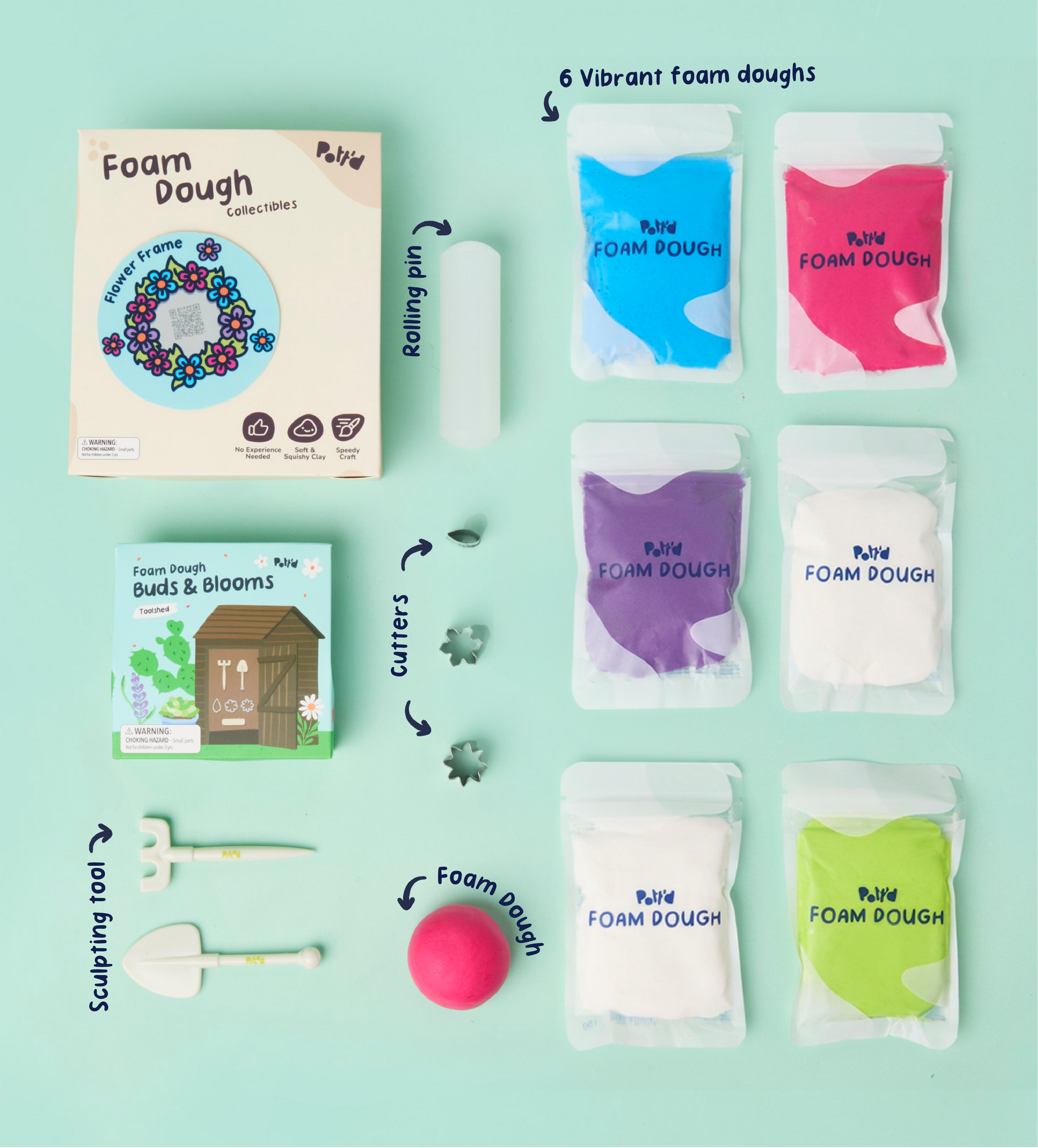 Brand new to crafting? No worries! Pott’d Foam Dough kits come with all the tools & foam dough you need, quick-start guide and step-by-step video tutorials so you’ll be creating in no time.