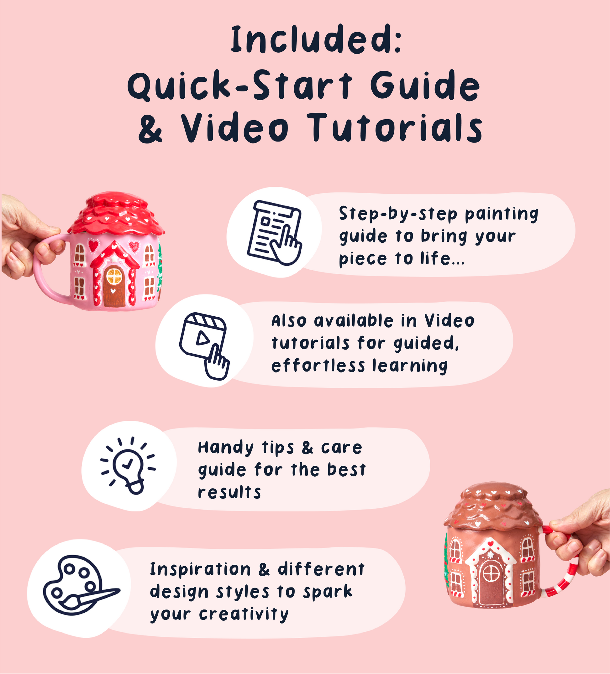 Make your Christmas cuppa extra cosy with the Gingerbread House Paint-a-Mug Set. This festive duo includes two charming ceramic mugs shaped like gingerbread houses, each with its own snug little lid - ready for you to paint, personalise, and bring to life with colour.