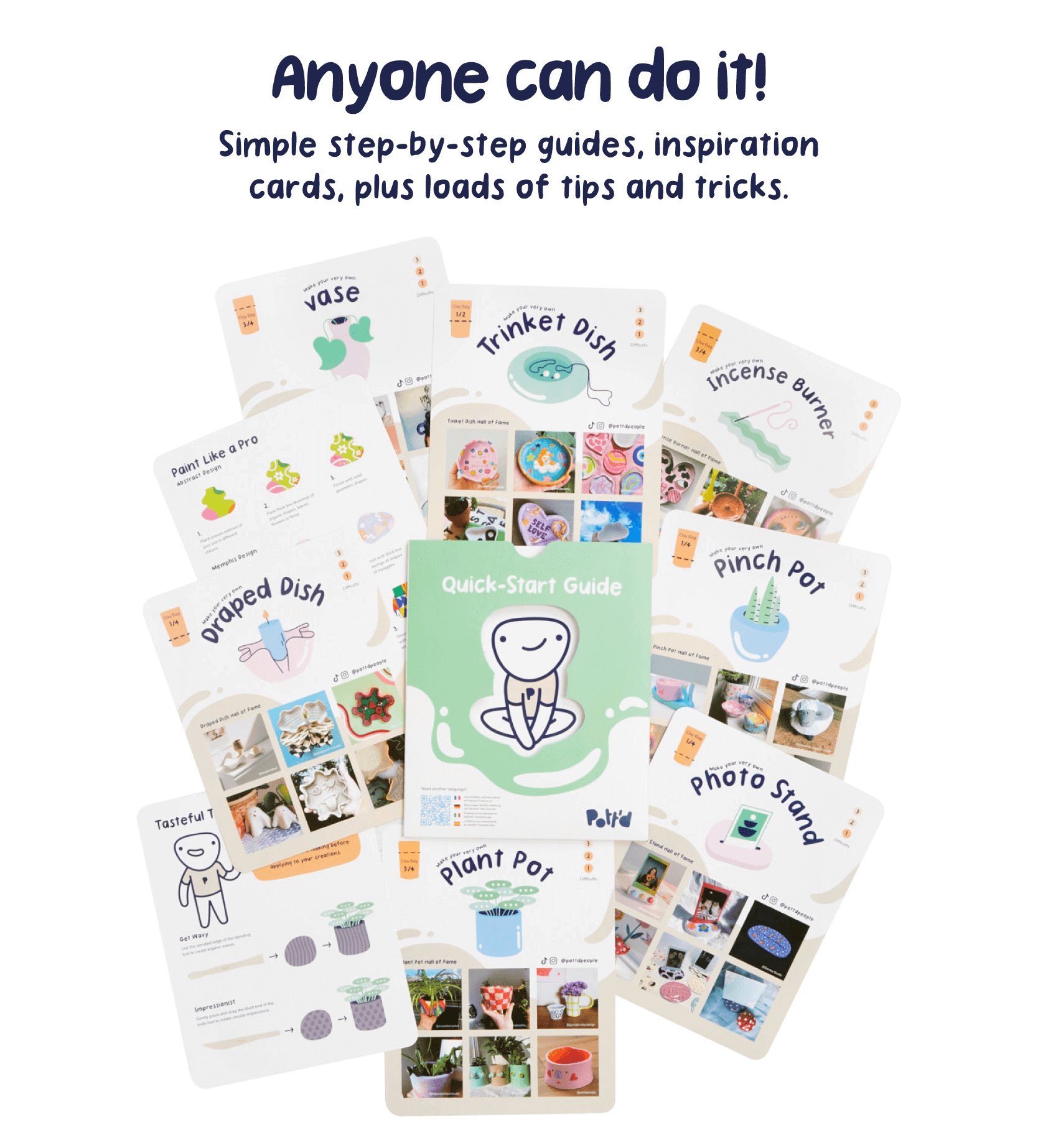 📝 1 x Pott’d quick-start guide with step-by-step instructions, and inspiration to create a whole bunch of creative pottery