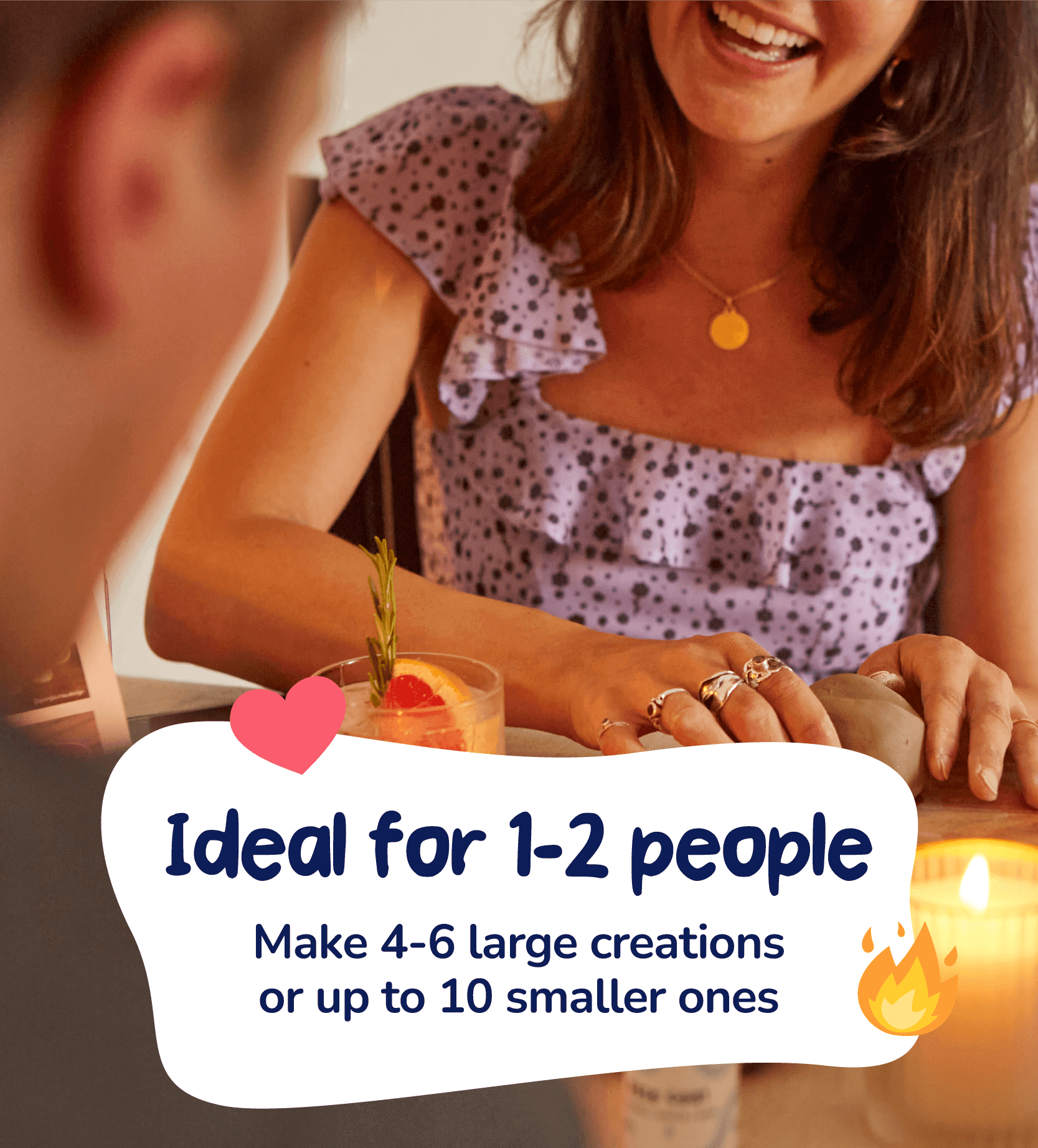 Perfectly proportioned and designed for 1-2 people. Your kit includes enough clay for 6-8 average sized creations, 2-4 large ones, one extremely large one. You get the idea. Plus enough tools and paints to share between two.